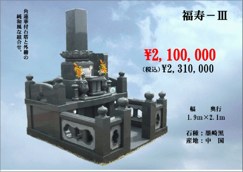 当店では、分かりにくいと言われるお墓の価格を明瞭に。分かりやすく提示いたしております。下記のように、すべての展示墓石に、明瞭な費用を提示しております。