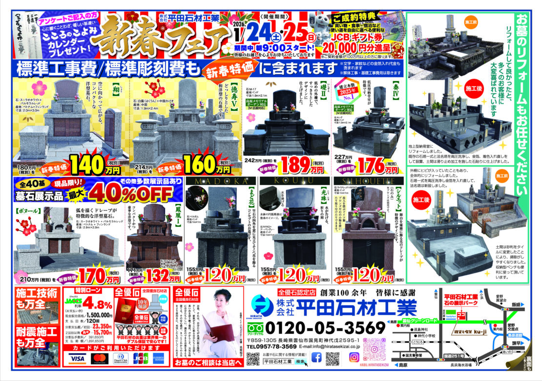 お墓建立やリフォームなど検討されている方は、お得なこの機会にぜひご来場くださいませ。
