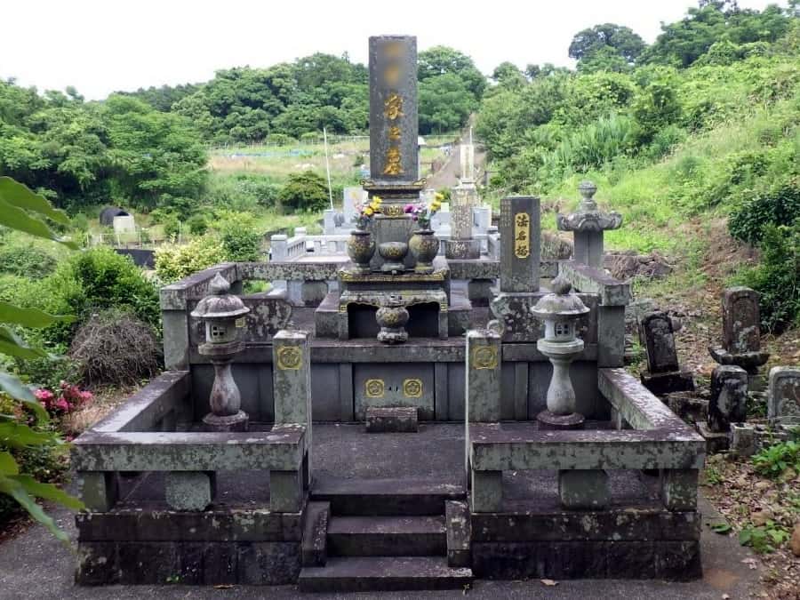 元々あった場所に、スリン付和洋型の石塔をのせ、右側に六角の法名塔をのせて建て替えらえました。入口の階段をなくし、周囲を舗装して入りやすくなりました。