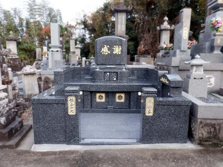 展示品の「なごみⅡ」のデザインで建てられました。法名塔は外柵に設置し、土間は滑り止め加工をしたとび石で仕上げました。