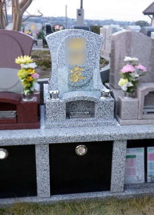 現在は展示品がありませんが、以前展示していた“優美”のデザインを基本に建てられました。コンパクトな納骨室で円柱タイプの法名塔を右側に設置、収納型ベンチには背もたれも付いていてゆったり座れます。